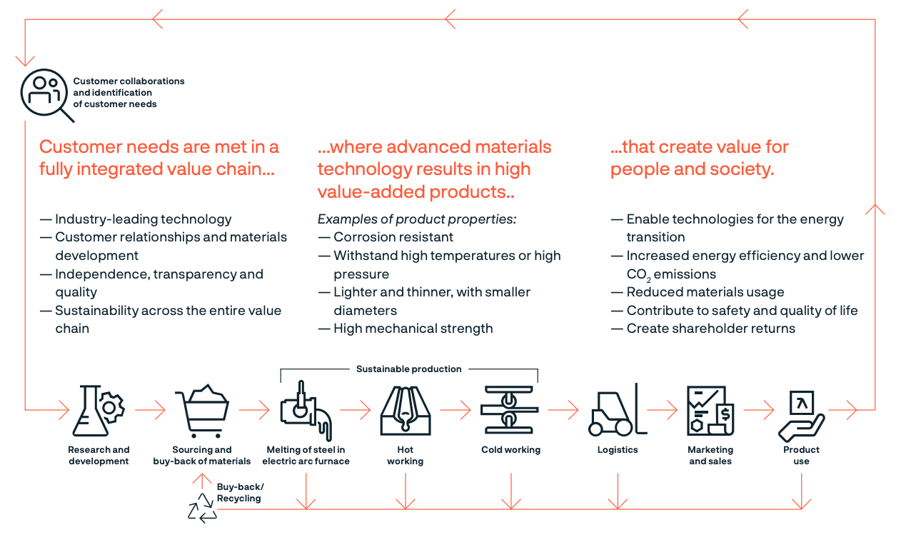 Alleima’s business model aims to deliver profitable growth and create added value for our stakeholders. Sustainability is a key and integral part of the entire value chain.