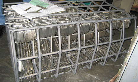 När större partier härdas finns det risk för temperaturskillnader inom partiet. Materialet bör därför ges en chans att uppnå jämn temperatur genom att blötläggas vid 850°C (1562°F) under värmningsprocessen. Materialet bör också ges en längre blötläggningstid och något lägre temperatur i förhållande till styckhärdningen.